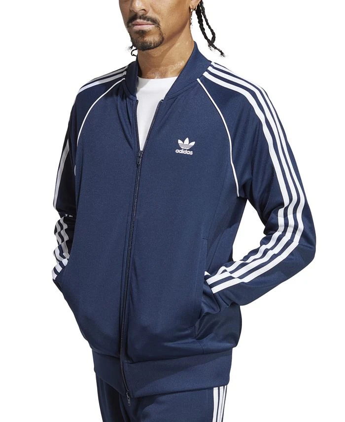 Pulled from the archives but reimagined for today, this men’s adidas track jacket is a true everyday staple. Its iconic fit and legendary 3-stripes styling add a sporty feel to any look.