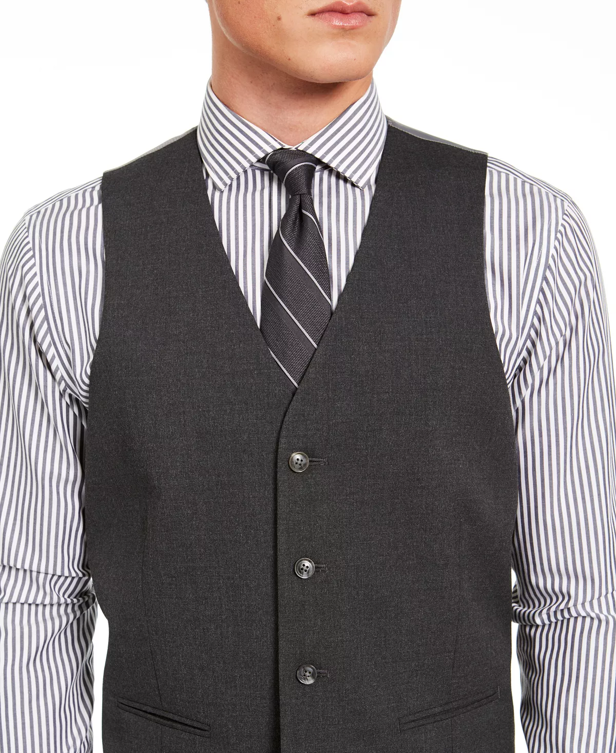 Refresh your formal look with the clean lines and polished black tone of this classic-fit suit vest from Alfani.