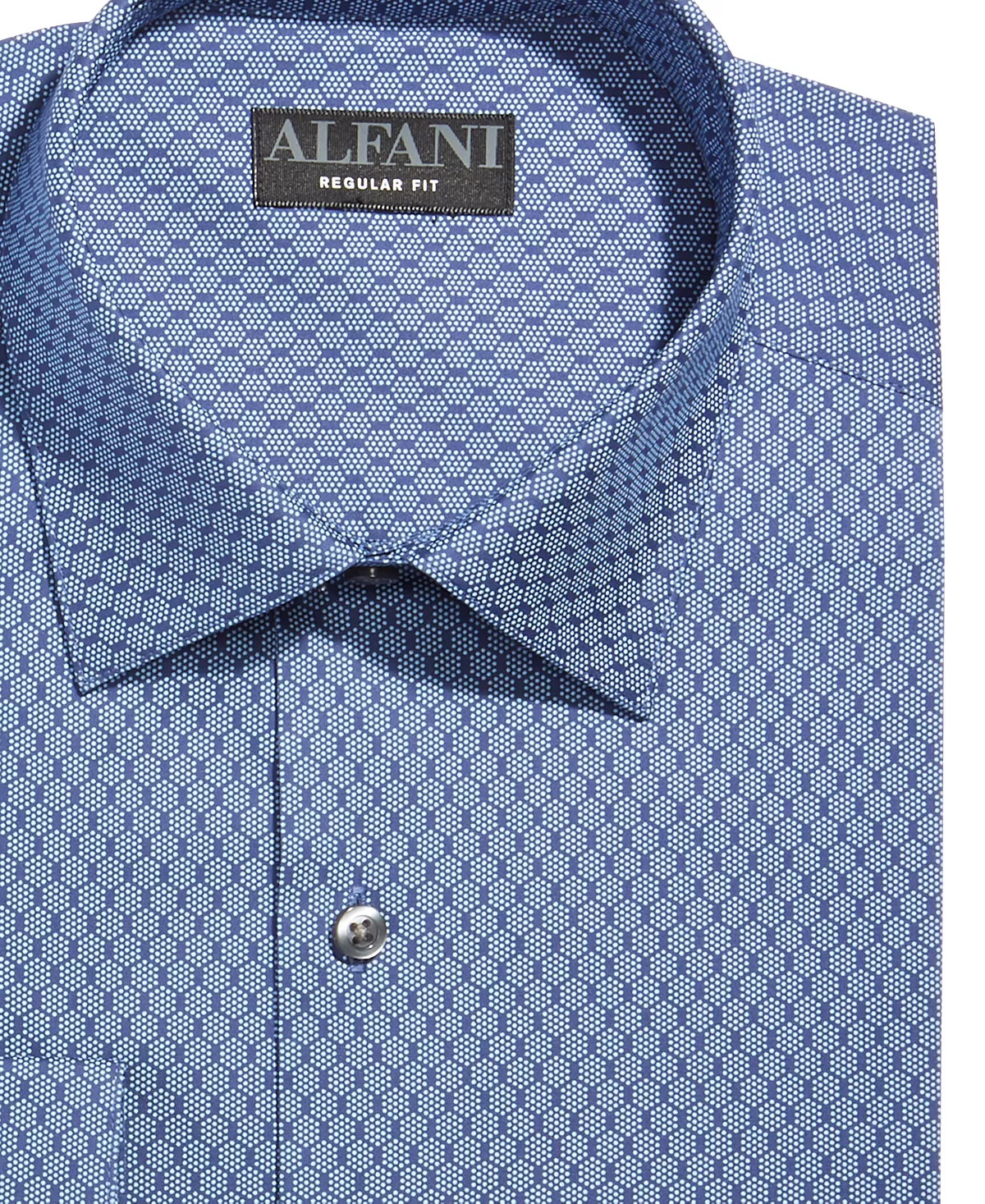 A mesmerizing honeycomb pattern takes this classic-fit shirt from Alfani to the next level, while wrinkle-resistant fabric and moisture-wicking technology make sure you stay dry and crisp no matter the occasion.