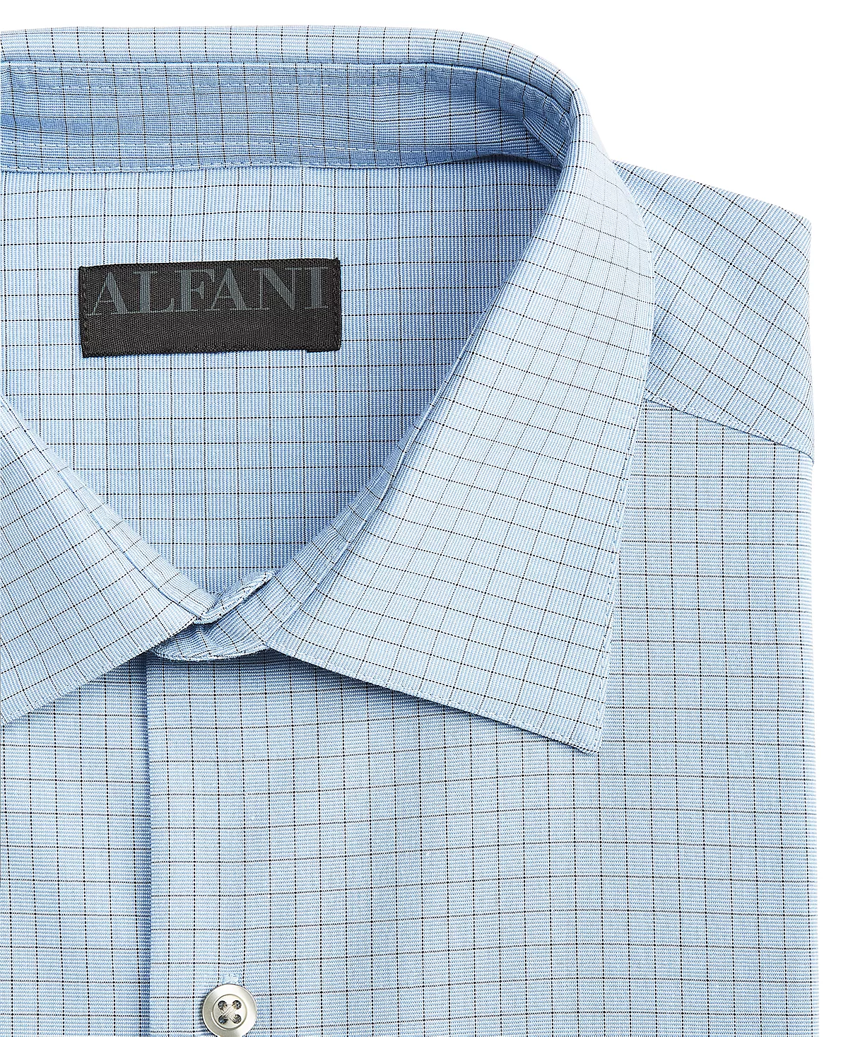 Keep your look feeling fresh with the stretch fabric and stain-resistant technology of this classic-fit check dress shirt from Alfani.