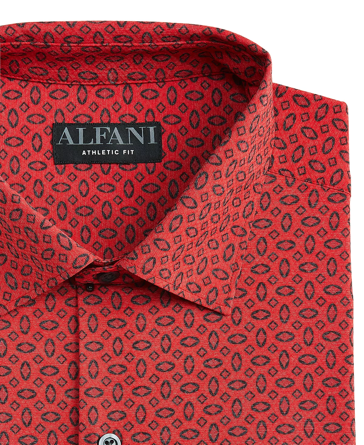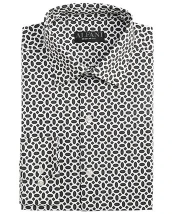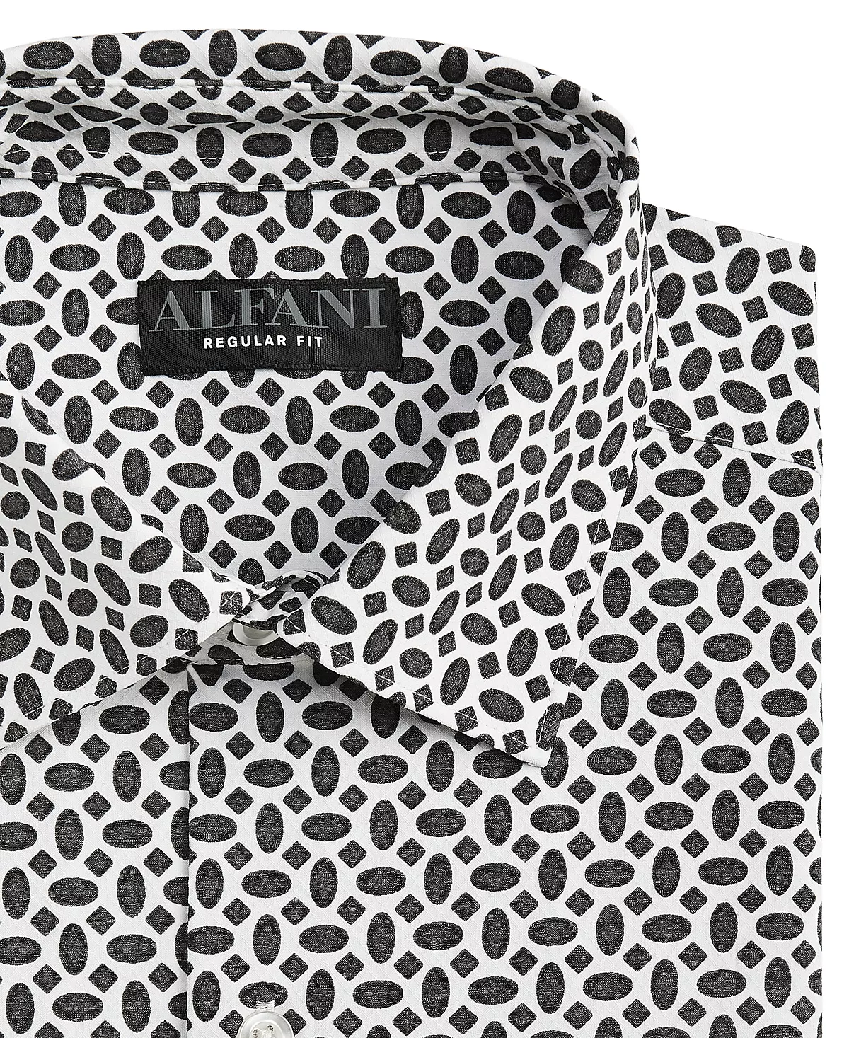 In breathable stretch fabric for maximum comfort, this geo print Alfani shirt makes a great travel companion thanks to its wrinkle-resistant technology.