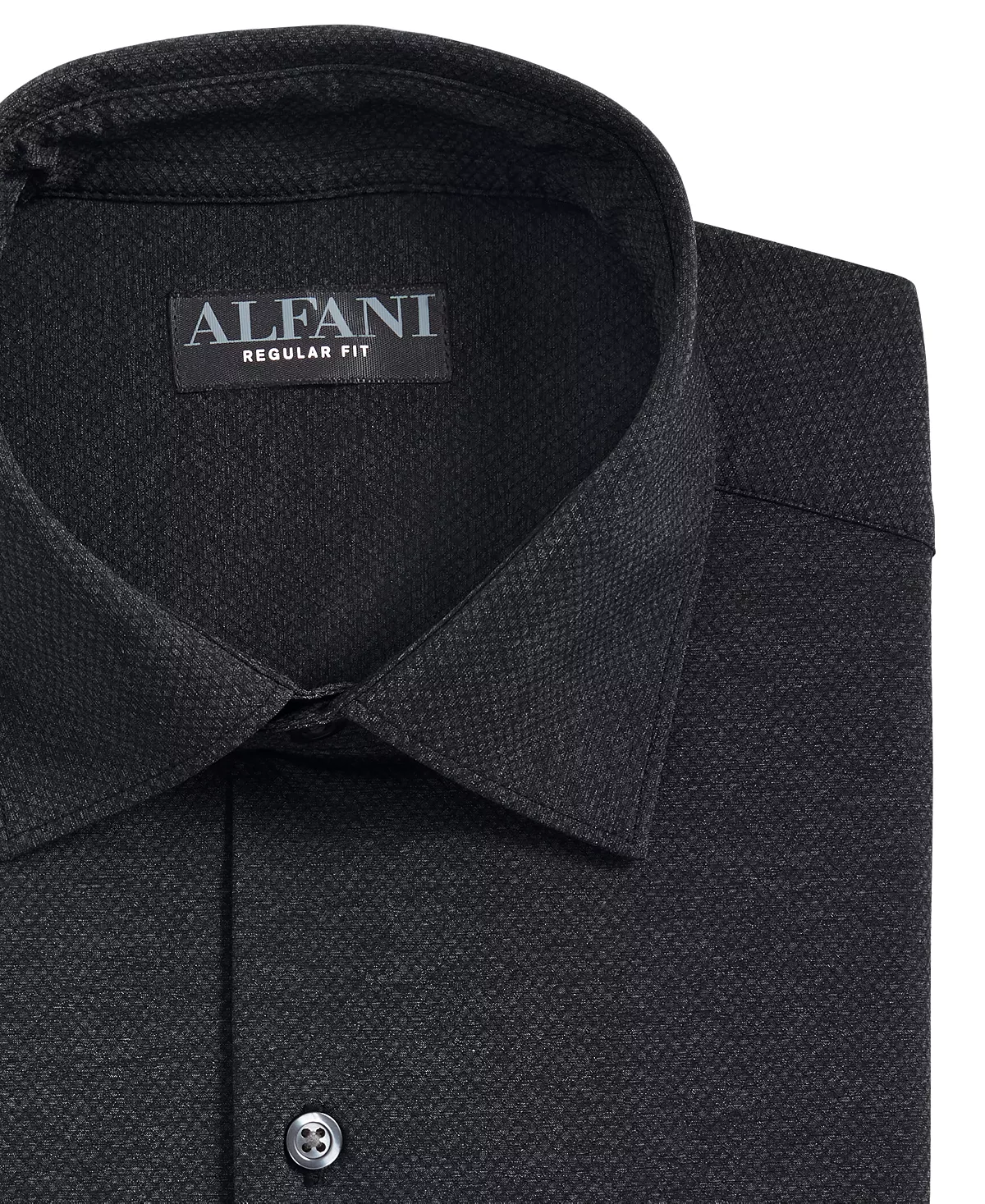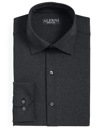 Stride into your next event or meeting with total confidence in this knit dress shirt from Alfani, equipped with wrinkle-resistant stretch fabric that wicks away sweat for unbeatable max comfort.