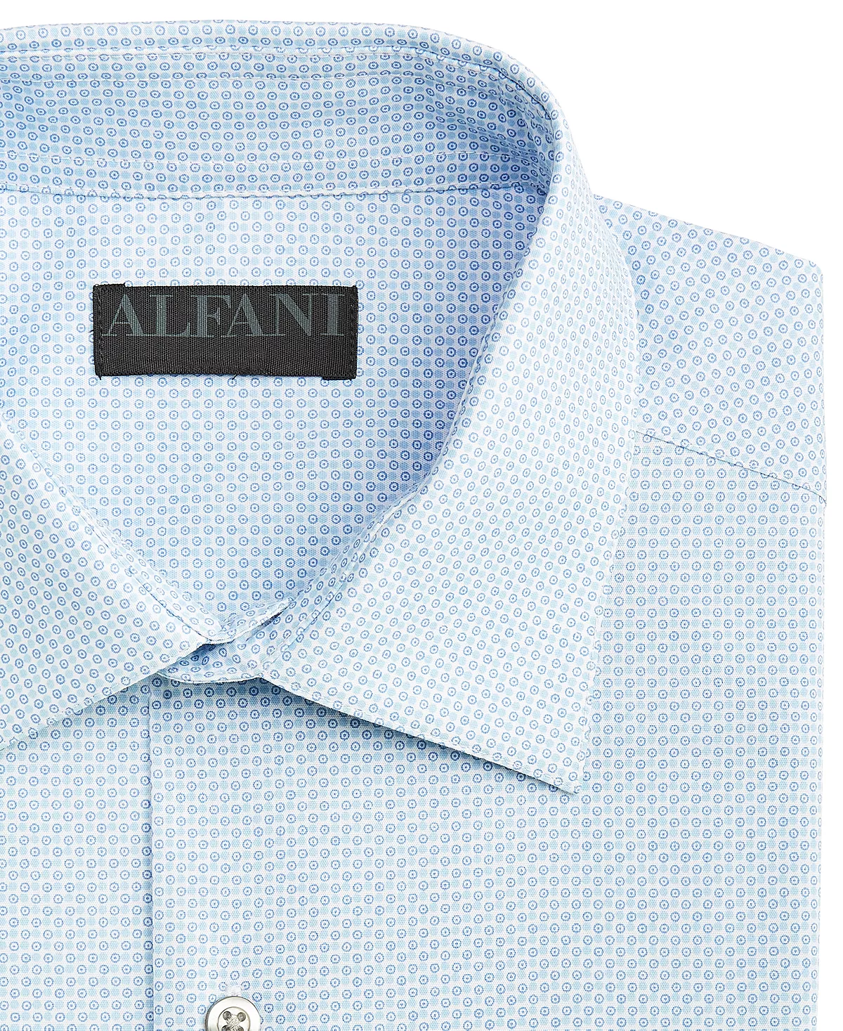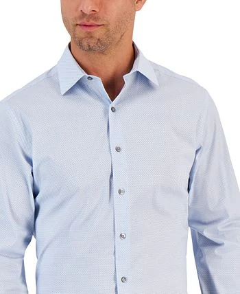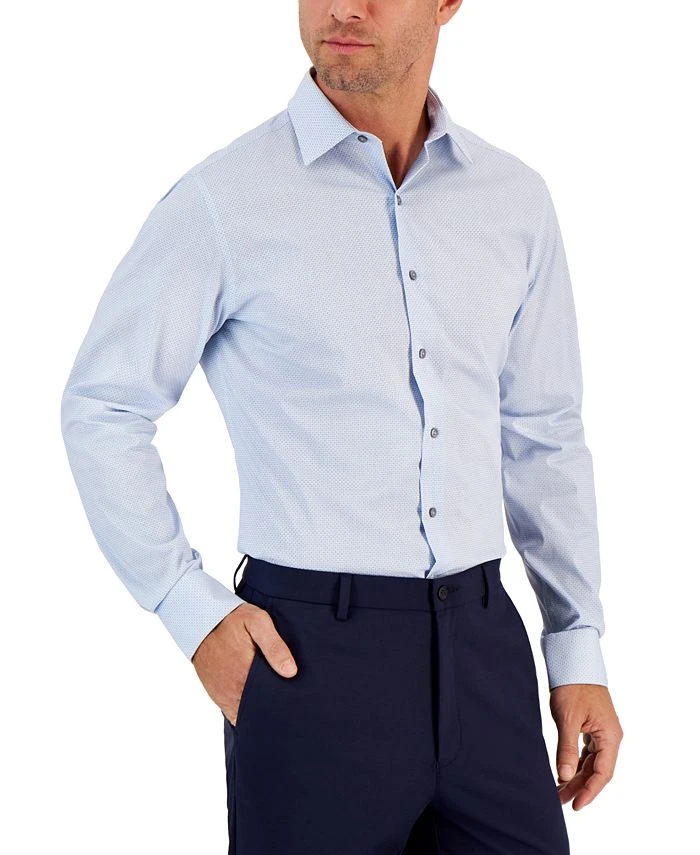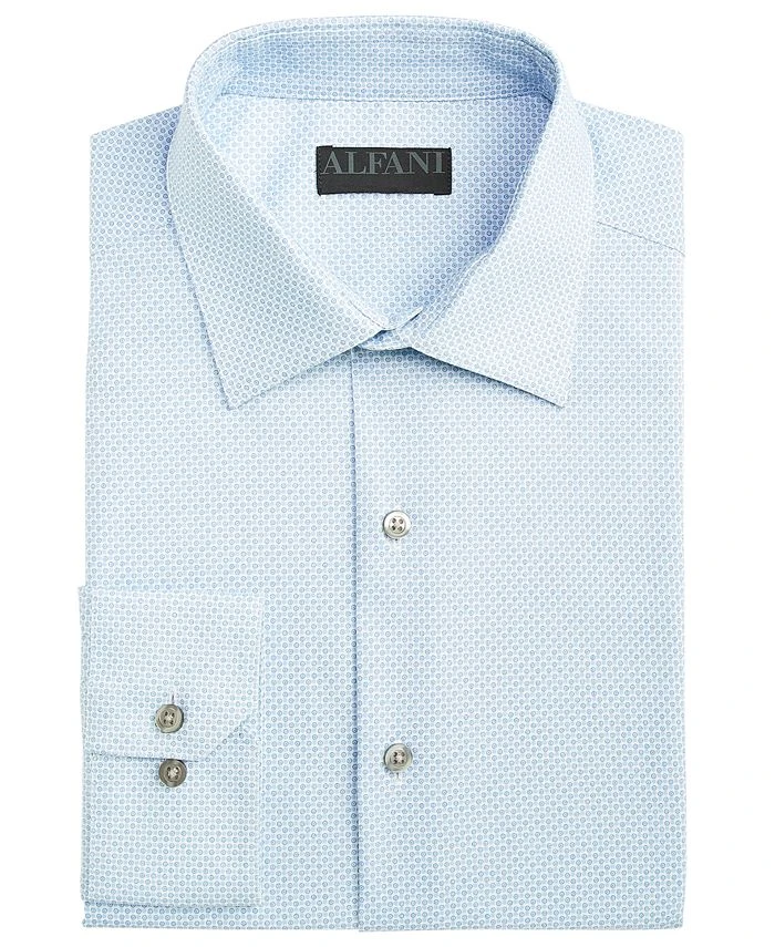 Built to resist stains and provide long-lasting comfort, this slim fit, dot geometric-print dress shirt from Alfani will make a valuable addition to your professional wardrobe.