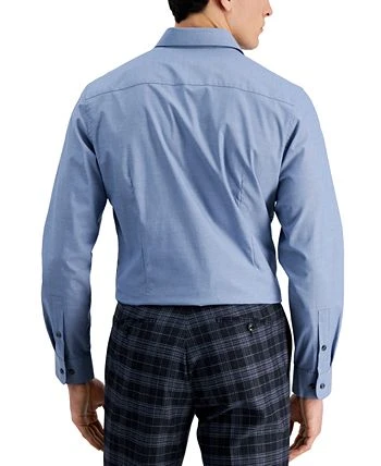 Designed to rest comfortably at the hips for an untucked, casual look, Bar III’s chambray button-down gives you the comfort of all-cotton stretch fabric alongside a breezy spread collar.