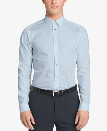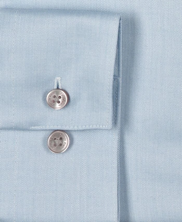 Update your professional look with this solid dress shirt from Calvin Klein, featuring a modern slim fit for a versatile yet stylish silhouette, this shirt is crafted from crisp moisture-wicking fabric for a piece that helps you to feel good, as well as look good. A shirt to support a busy lifestyle, not only does this piece offer easy wearability throughout your busy day, it also boasts Non-Iron performance so your style is ready to roll. Finished in a classic herringbone, this look harmoniously transitions from work into the weekend.