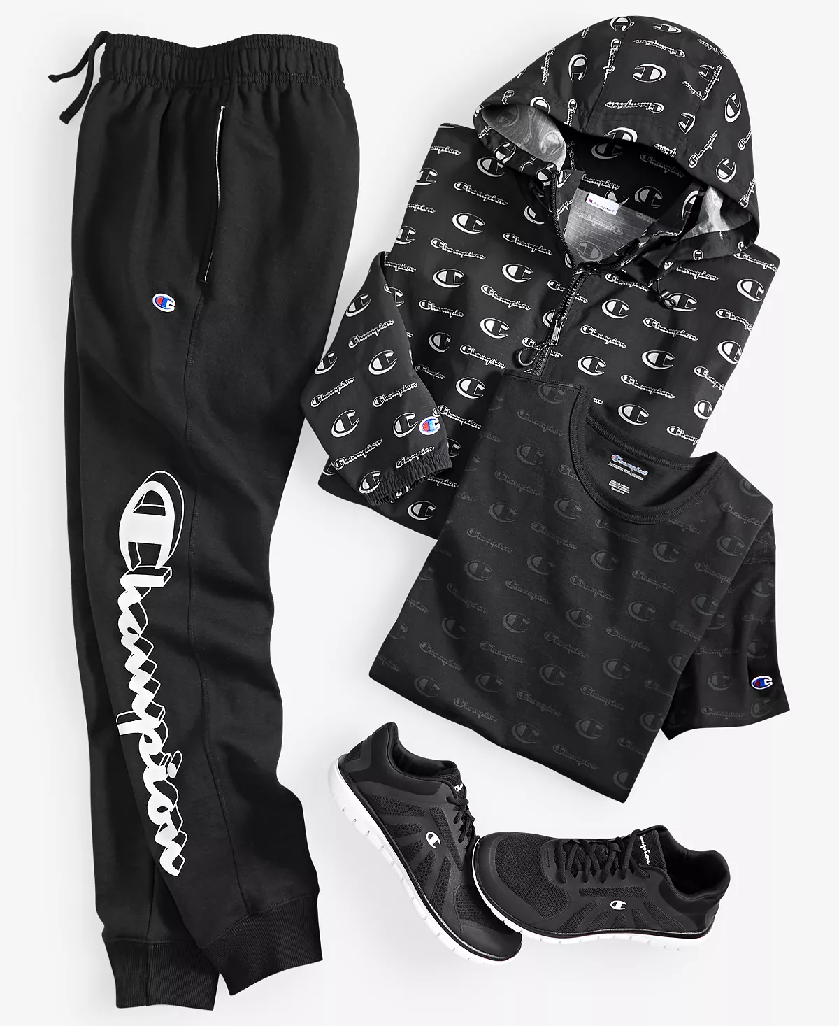 A comfy feel with a sporty vibe, this all-cotton T-shirt from Champion is covered with script logos for a fresh look.