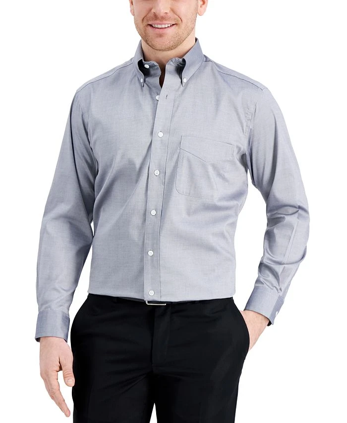 Outfitted with a crisp button-down collar and wrinkle-resistant stretch fabric for total freedom of movement, this dress shirt from Club Room is the perfect choice for professional style and comfort.