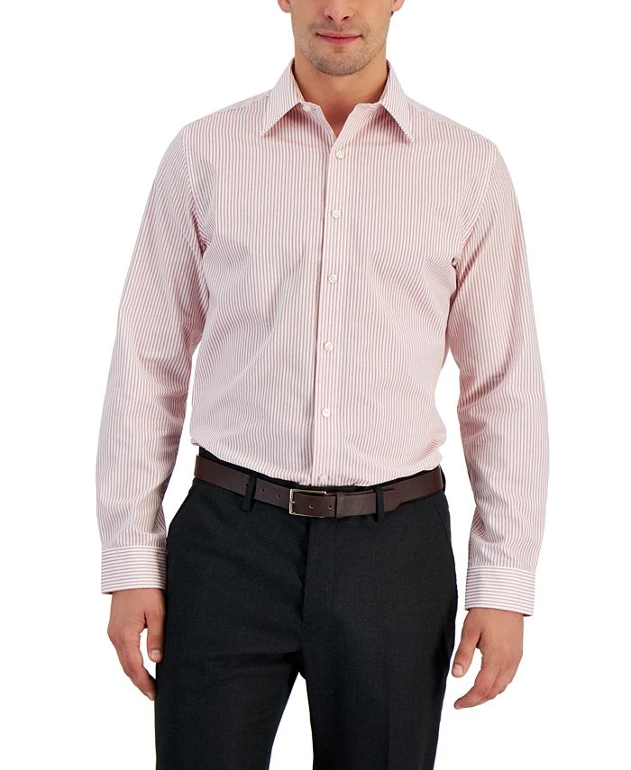 An essential everyday look that pairs effortlessly with the best of your formal collection, Club Room’s subtle stripe dress shirt is designed for a slim fit that helps you lock down ultra-sleek, of-the-moment style.