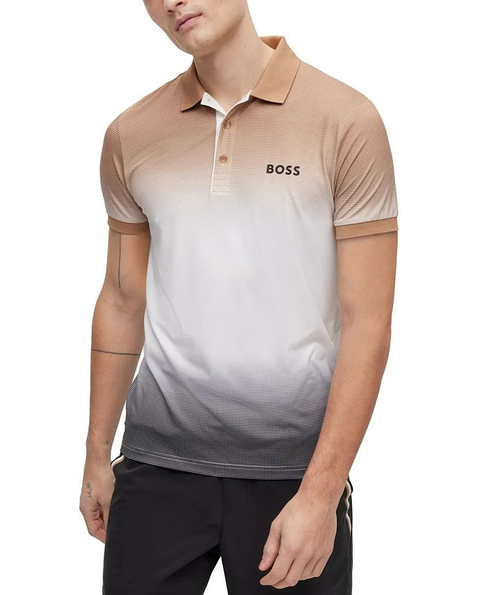 A polo shirt by BOSS Menswear, designed in stretch jersey with a BOSS logo and degrade signature stripes. Part of the dynamic BOSS x Matteo Berrettini capsule collection, co-created by the Italian professional tennis player.