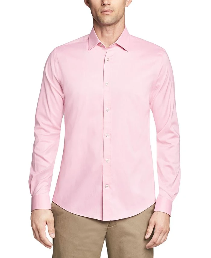 Experience the comfort of this Michael Kors dress shirt. Its Airsoft Eco fabric is made in part from recycled materials that create an extra-soft texture. A shorter hem allows for neat untucked styling, while wrinkle-free properties make the style easy to care for at home without any ironing.