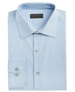 Alfani Men’s Regular Fit 2-Way Stretch Stain Resistant Stretch Check Dress Shirt, Created For Macy’s